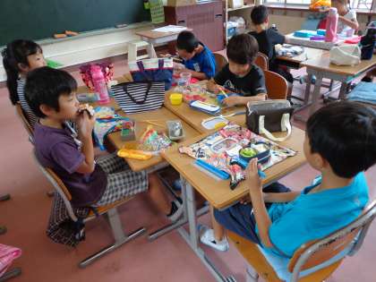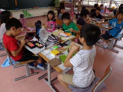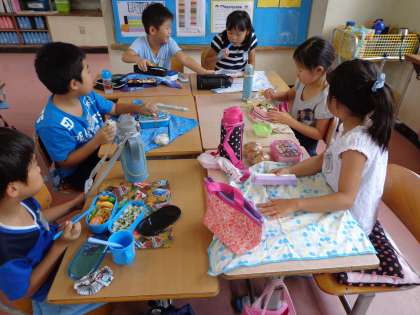 今日は給食がなくて,お弁当の日です。みんなおうちの方に作っていただいたお弁当をおいしそうに食べていました。