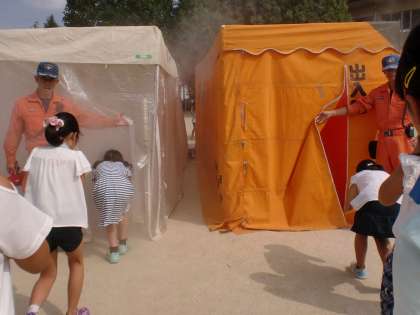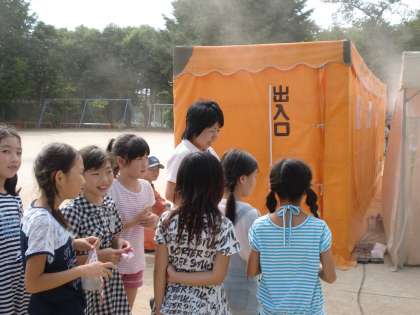 9月5日に地域の方々と防災訓練を行いました。おかしもちを合い言葉に訓練に臨みました。