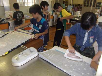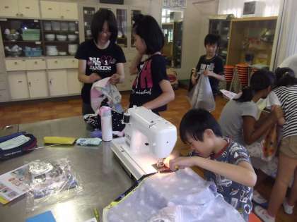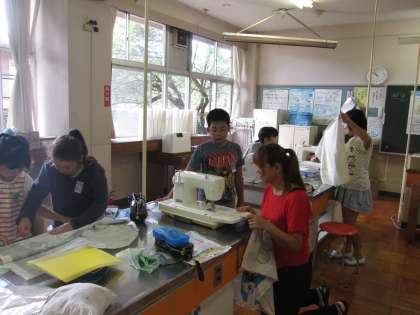 家庭科ではミシンの学習が始まりました。学習ボランティアでお母様達にも入っていただいて,エプロンの製作をしています。素敵なエプロンができそうです。