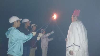 厳かに点火の式が始まりました。火之神の言葉をしっかりと聞き、営火隊の高らかな誓いの言葉と共にすばらしい炎があがりました。