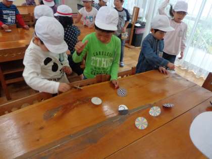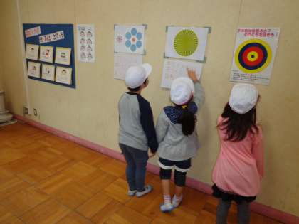 保健委員会による「目の愛護デー」が行われました。クイズや不思議な図形など,目に関するものがたくさんあり,何度も試して「なんで?」と考えている子もいました。こまの模様の変化には,「見て見て。」と楽しそうでした。目の愛護週間。大切にしていきたいと思います。