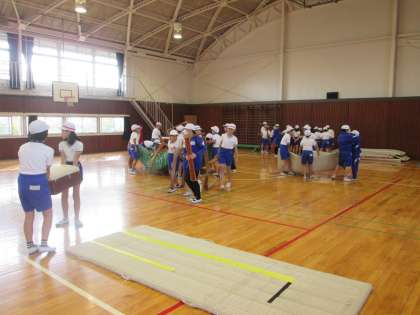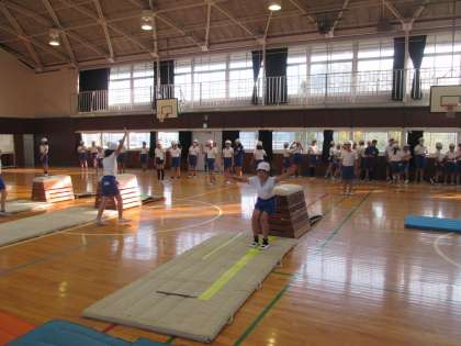 体育では,ソフトバレーボールを終え,跳び箱運動の学習が始まりました。