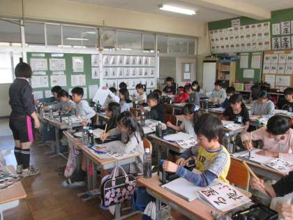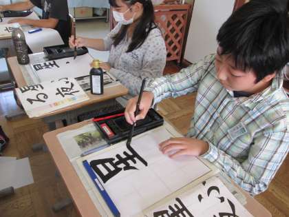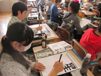 沼宮内先生との書写の時間。「星ふる夜」と書くのは2回目。良い字を書こうと集中して取り組みました。