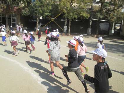 今日も業間ランニングタイムに黙々と取り組む3年生。