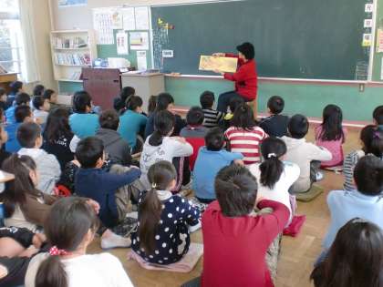 山ちゃんの読み聞かせでは,国語で学習したお話と同じシリーズの絵本を読んでいただきました。つながりのある物語を読むという学習にぴったりの読み聞かせでした。