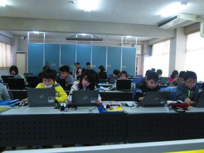 慣れないローマ字に苦戦しながらも,一生懸命取り組んでいます。
