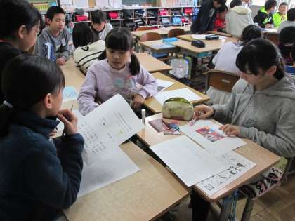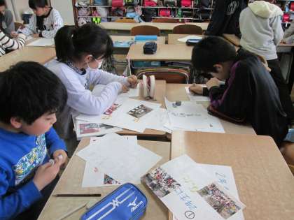 いよいよ来週,6年生を送る会です。思い出フォトチーム,メッセージカードチーム,それぞれに準備が進んでいます。