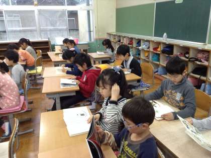 昨年と同様,8時25分からは読書の時間です。1組も2組も静かに読書をしています。落ち着いた一日の始まりです。