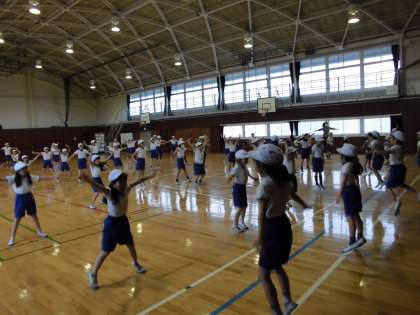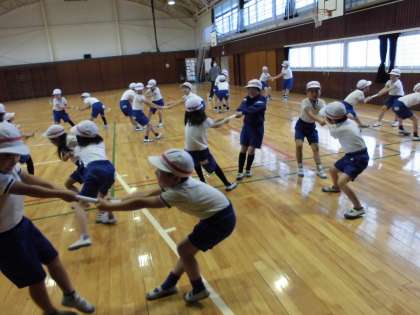 今日の体育の様子です。準備運動の仕方を1からゆっくり確認しました。その後は,タオルを引き合って腕力アップ!みんな必死だけど,楽しそうに引っ張っていました。