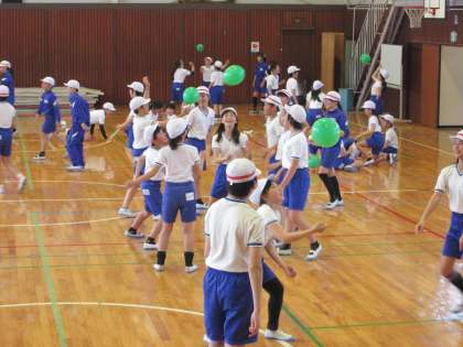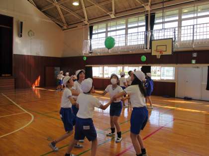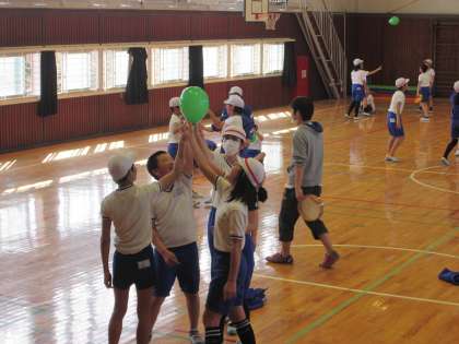 体育の時間の後半に,風船を使った体ほぐし運動を行いました。