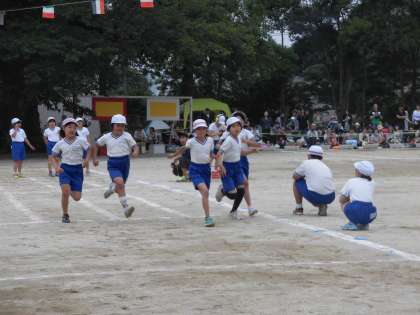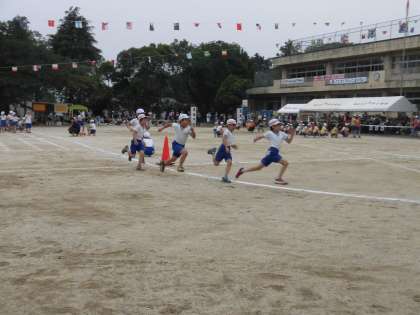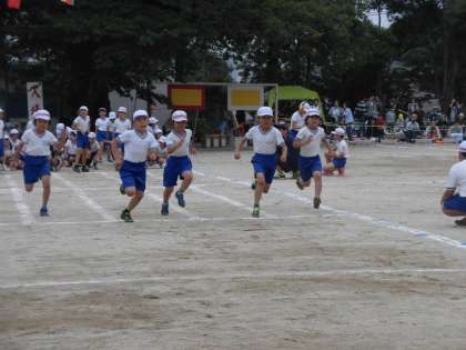 学年種目の徒競走。昨年より少し走る距離がのびましたが,真剣な表情で最後までかけぬけることができました。