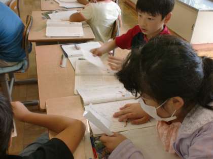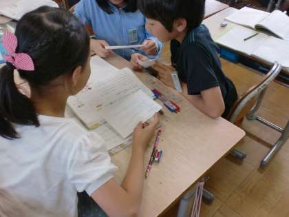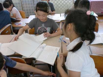 国語でメモの取り方の学習をしました。各自のメモを見て比べているところです。