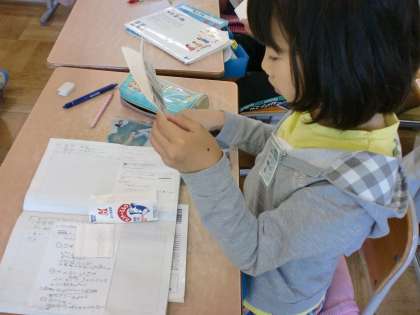 メモをもとに竹とんぼを作りました。質問をしなかったので,ストローに入れる切れ込みが縦か横か分からないという失敗がありました。教え合いながら,全員作ることができました。