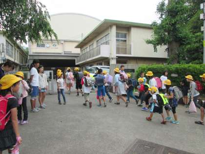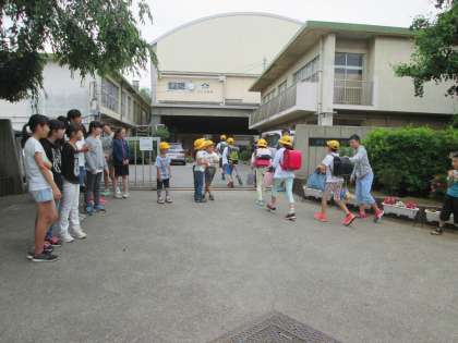 白山小学校では,下学年と上学年とのペアによるあいさつ運動が行われています。今週は本年度初めての6年生と1年生によるあいさつ運動です。白山小のみんなに,地域の方に,すてきなあいさつの声を届けようと頑張っています。