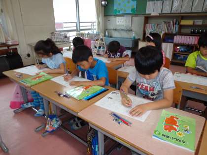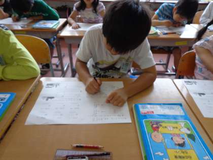 ひき算のプリントに取り組んでいるところです。繰り下がりのある計算に苦労している様子の子がいます。来週には,ひき算のテストを行う計画ですので,ご自宅でも計算ドリルの宿題が出たときには,一緒に見てみて下さい。
