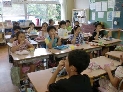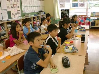 給食後の歯みがきです。細かくブラシを動かして左右同じように磨けたかな。