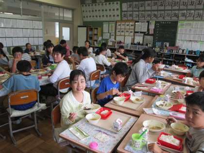 給食の時間…今週はもぐもぐ大作戦です。今日のもぐもぐ大作戦のメニューは「あじのさらさあげ」でした。いつも食缶が空っぽの6年生…もちろん今日も食缶は空っぽでした。ごちそうさまでした!