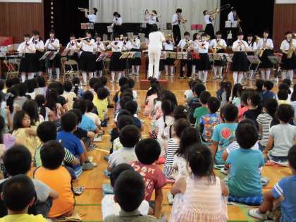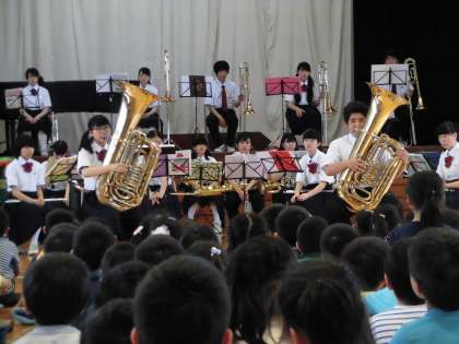 取手第二中学校吹奏楽部の演奏会が行われました。知っている曲もいくつかあり,のりのりで聞いていました。クイズも有り,楽しいひとときでした。