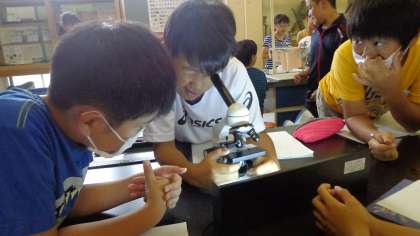 理科の授業でメダカの観察をしました。