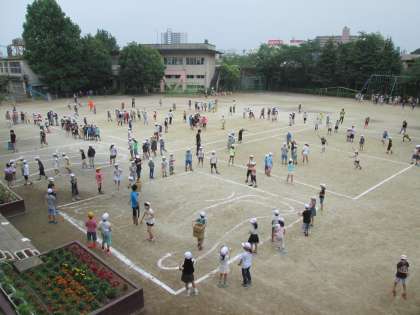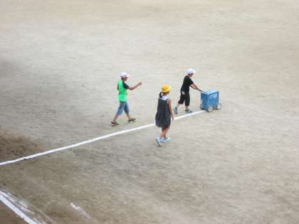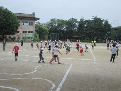 6月の白山タイム…6年生は準備のライン引きから,頑張っていました。校庭ではドッジボールやどろけいを楽しんでいました。