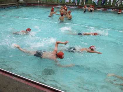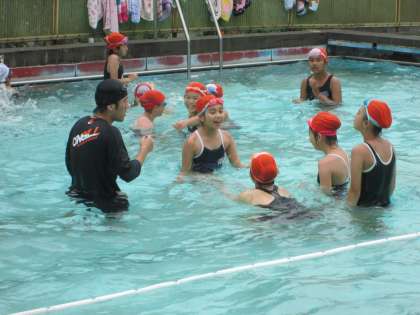 第2回目の水泳学習。曇り空でしたが,自分の目標に向かって,頑張っていた6年生です。
