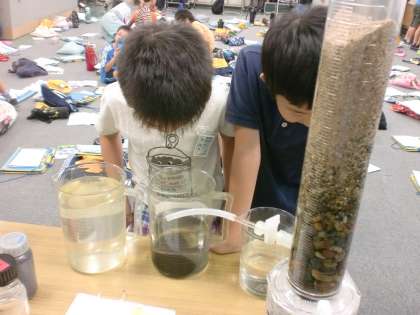 社会科の学習で利根川浄水場へ見学に行きました。1日に25mプール200杯分もの水をきれいにし,わたしたちに届けてくれていることにびっくりしていました。ゴミを吸着する活性炭やゴミなどを沈めるためのパック,消毒のための塩素を入れていることも理解しました。