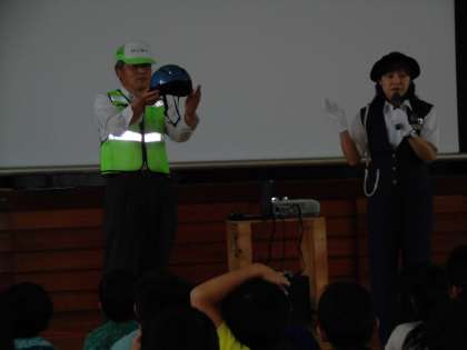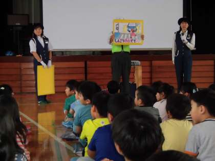 取手警察署の方・スクールガードの方より,命を自分で守るための交通安全についてお話をしていただきました。交通安全ボランティアの方や保護者の方も一緒にDVDを見ました。安全な自転車の乗り方,歩行の仕方を覚えました。