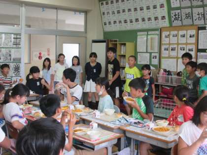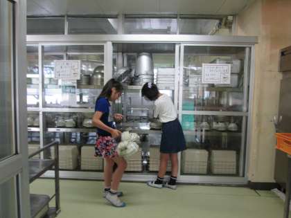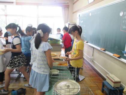 5年生が出前授業,2年生3年生がプールで給食の準備が遅れると,6年生がさっと動いて準備のお手伝いをしました。