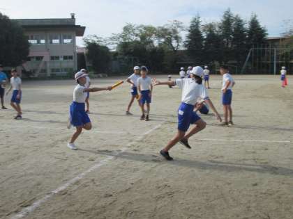 陸上記録会に向けて,朝のリレーの練習が始まりました。第1日目の今日は主にバトンパスの練習をしました。朝早くから,やる気いっぱいで取り組んでいました。