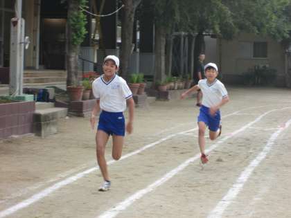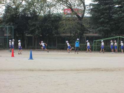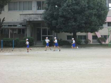 朝の陸上練習2日目。今日もやる気いっぱい!バトンパス,100メートル走,一生懸命行っていました。