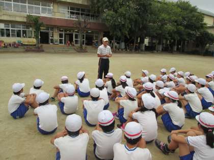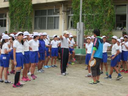 山中先生に,速く走るコツなどを教えていただきました。やる気いっぱいで取り組んでいた6年生です。