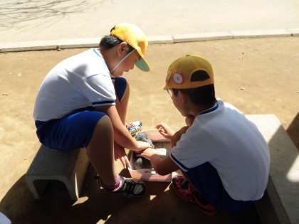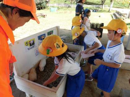 モルモットとのふれあいコーナーでは,こわごわとカゴに入れて,やさしく触っていました。