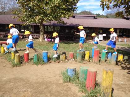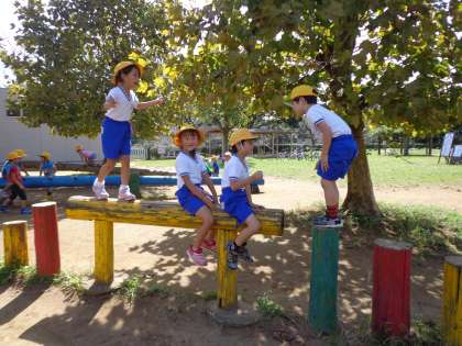 アスレチックでは,忍者ごっこやじゃんけん鬼などで汗をかきながら,仲よく遊んでいました。