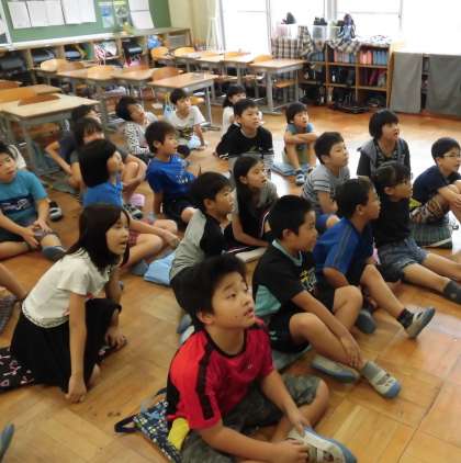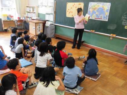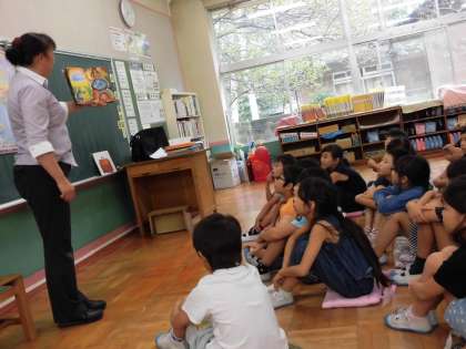 とりで子ども本の会から講師の方に来ていただき,読み聞かせや本の紹介をしていただきました。みんな興味を持って,集中しておはなしを聞いていました。「読書の秋」ともいうので,これからたくさんの本を読めるといいですね。