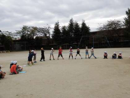 11月の感謝集会では音楽劇「ピノキオ」を発表します。そのため,音楽の時間は校庭に出て,グループごとに歌を歌ったり,踊りを考えたりしています。昨日は,みんなの前でグループごとに発表しました。