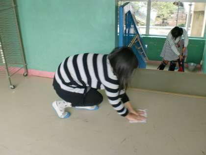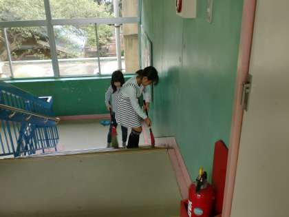 10月12日はロング昼休みのため,13日は就学時健康診断のため,2日続けて掃除の時間がとれませんでした。そのため,14日の朝ははっきりとわかるほど,階段が汚れていました。すると4人の女の子達が進んで階段の掃除をしてくれました。本当にありがたい心遣いです。