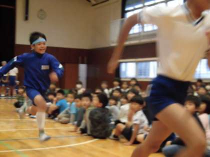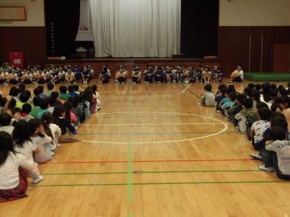 陸上記録会に参加する6年生の壮行会が行われました。本番で練習の成果が発揮できるよう精一杯エールを送りました。教室に戻ってから「僕のお兄さんは○○の選手だったよ。」「私のお姉さんは・・・。」「私の班長さんは・・・。」などなど,大好きなお兄さんお姉さんの事を応援していました。6年生のみなさん頑張って下さい。応援しています。