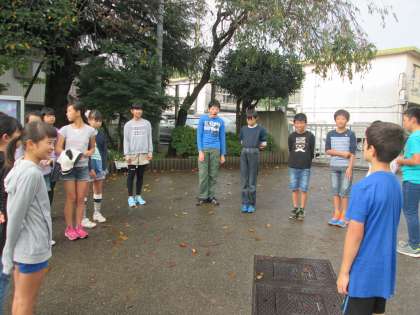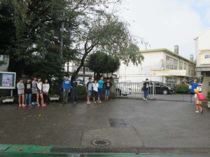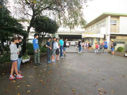 あいさつ運動。今週は6年1組が担当です。当番以外でもたくさんの人が参加し,気持ちの良いあいさつの声を響かせています。