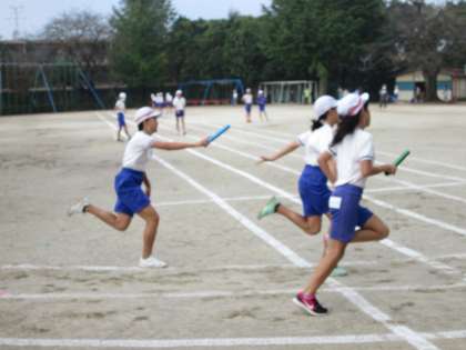 最後のリレー練習。バトンパスの確認。いよいよ明日は本番。練習の成果を発揮できるといいです。