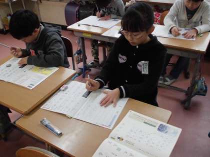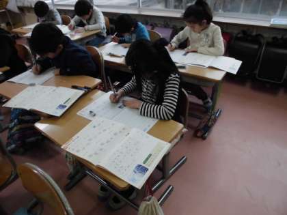 書写の時間の様子です。みんな静かに黙々と取り組んでいます。