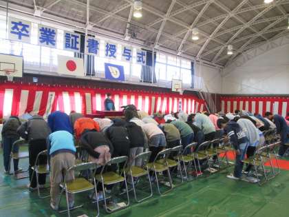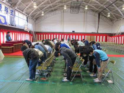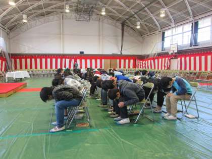 卒業式の練習。日に日に上達しています。礼も揃ってきました。