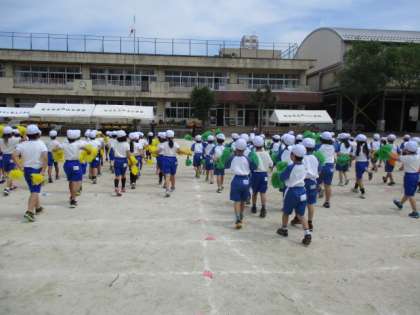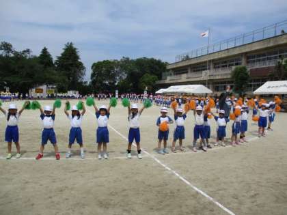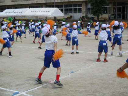 ポンポンをもって練習しました。元気いっぱい踊っています。