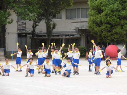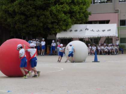 大玉を転がす「ころがせ元気玉」やかけっこの「栄光へのゴール」,「運命の王子様」,ダンス「サイレントマジョリティ」などほとんどの競技を実際に行いました。運動会本番でもがんばります。