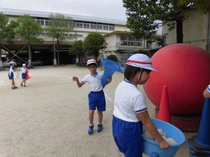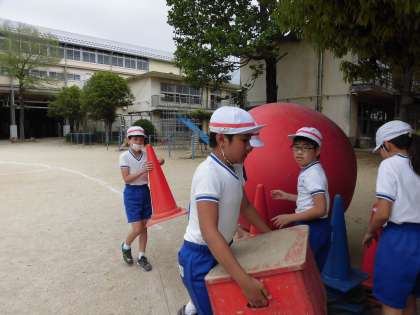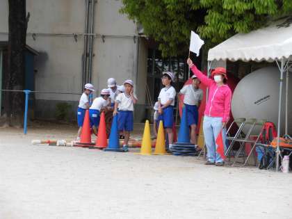 準備係も重要な役割です。重たいコーンを持ったり,大縄を片付けととてもきびきびと働いていました。
