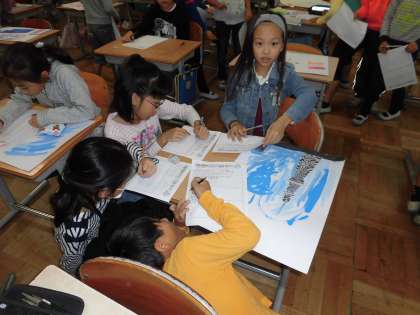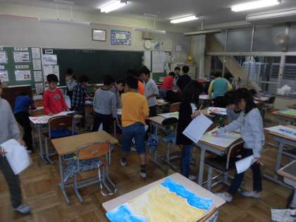 図工の授業で絵の鑑賞を行いました。いろんな絵を見ていいところをたくさん書いていました。