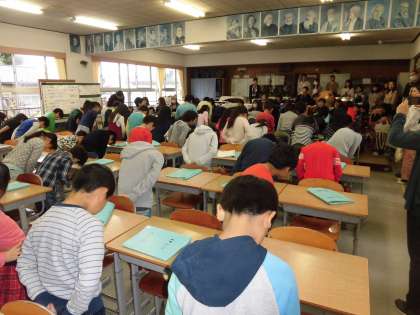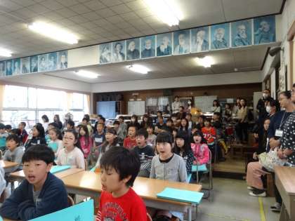 合同で音楽の授業を行いました。姿勢正しく,保護者の方にすばらしい姿を見せることができました。