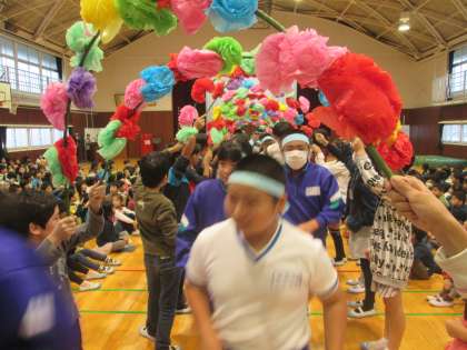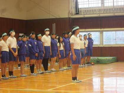 陸上記録会壮行会を5年生が中心となって行ってくれました。