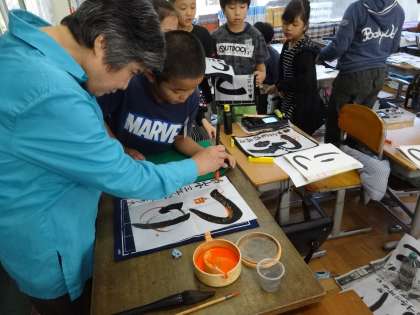 和泉先生に習字を教えてもらいました。集中して取り組み,話を聞くことができました。