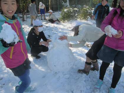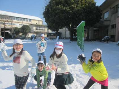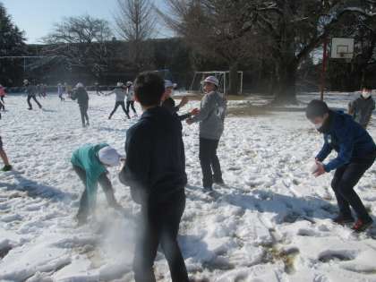 校庭には雪が積もり,みんなで雪遊びを楽しみました。