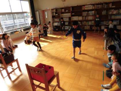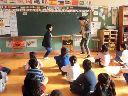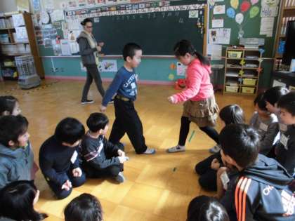3学期最初の英語の時間です。2学期の復習をし,今日は体を動かす単語を新しく学習しました。ゲームを通して,楽しく覚えます。